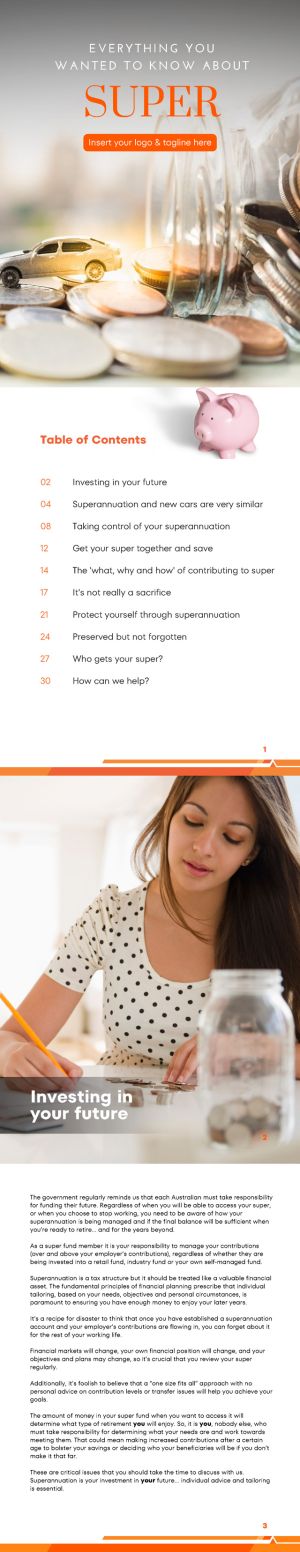 We understand the strict regulatory framework you must work within. All of the financial content offered has been written or approved by former Australian advisers who have had experience in helping everyday people create and protect a sound financial future for themselves and their families.