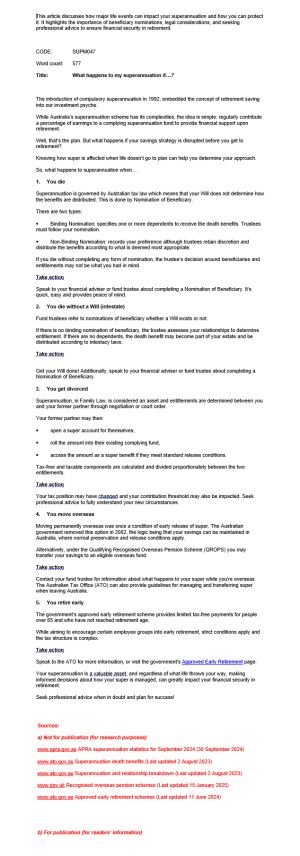 Writing articles that are easily understood is crucial; meeting compliance standards is our priority. The benchmark for all of our content is ASIC's Regulatory Guides 234 and 244.